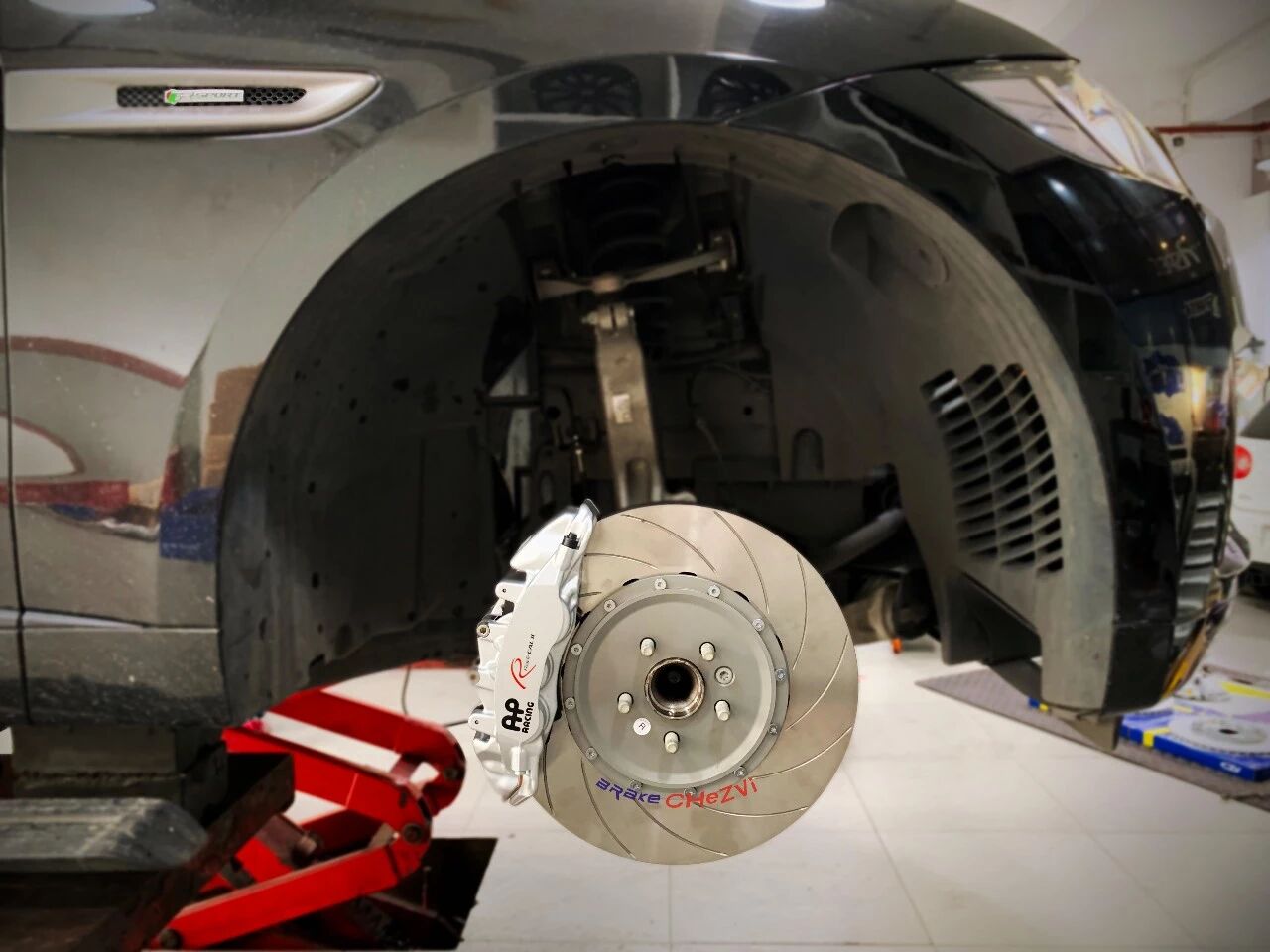 在剎車改裝上面,我們給車主推薦了極具性價比的AP Racing 新款的CP95系列前六活塞剎車套裝,后面CZV的加大碟套裝。下面我們就一起看看具體的案例。